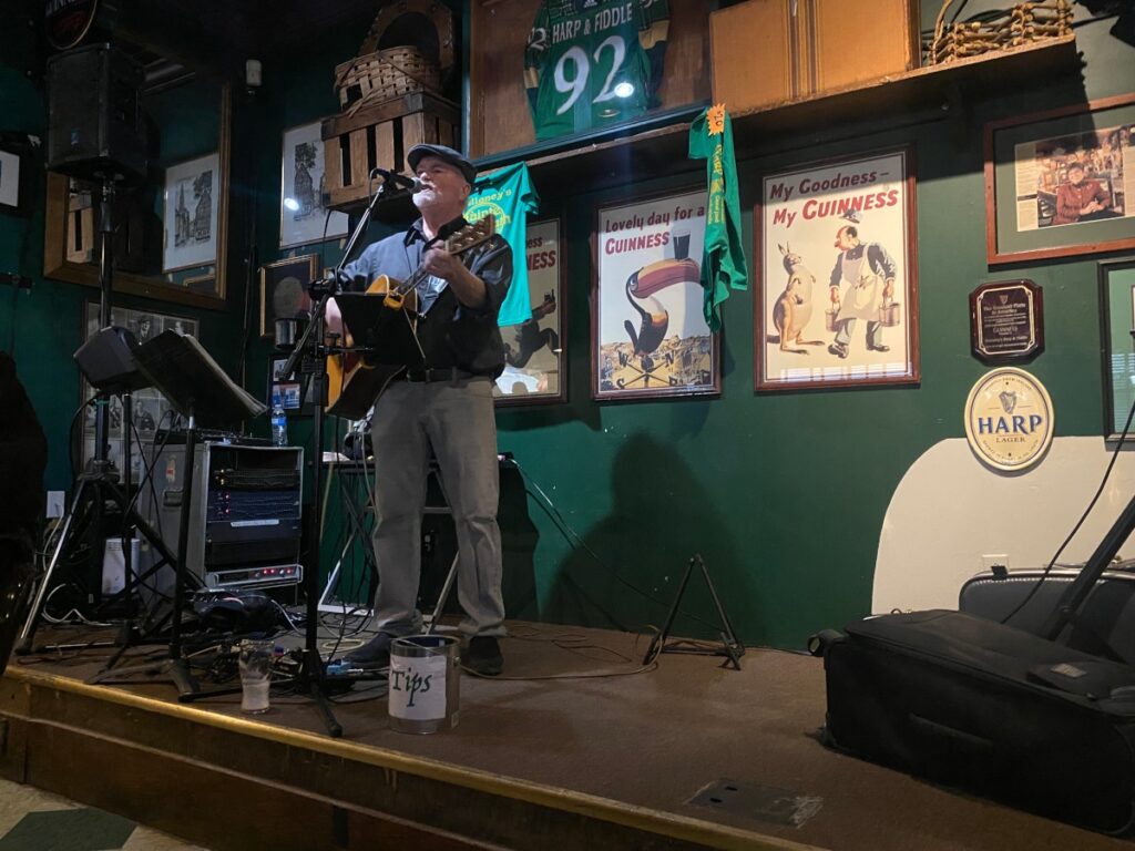Patrick Rieger emailed a photo: “Hi Marc, My Saint Patrick's Day observation started a few days early. My family and I were joined by a friend at Mullaney's Harp & FIddle the Wednesday before, thus avoiding the crowds. Our friend John McCann had a solo show that evening, and as always he did a great job.
