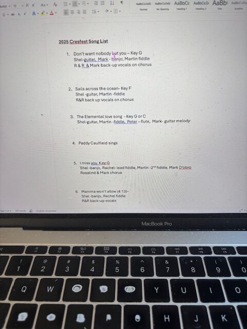 Shel O’Toole emailed a photo: “Hi Marc, I’m finalising a set list for my upcoming concert at Cresfest, a folk and roots festival held in Creswick Victoria Australia each April.